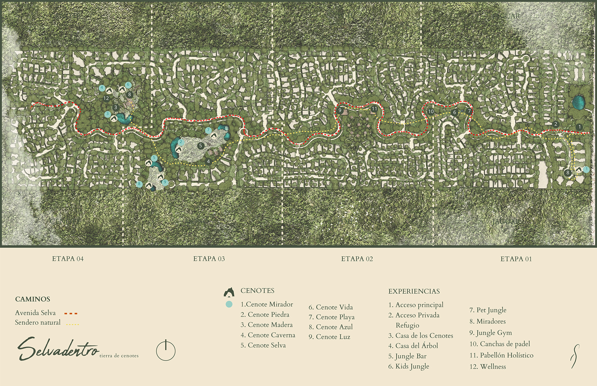 Desde senderos que serpentean entre la selva hasta áreas de meditación junto a los cenotes, cada rincón está pensado para fomentar el bienestar y la conexión con la naturaleza. Zonas de aventura se combinan con áreas familiares donde los juegos y la convivencia al aire libre crean recuerdos inolvidables. Este proyecto es un refugio integral, armonizando el cuerpo, la mente y el espíritu en un entorno inigualable