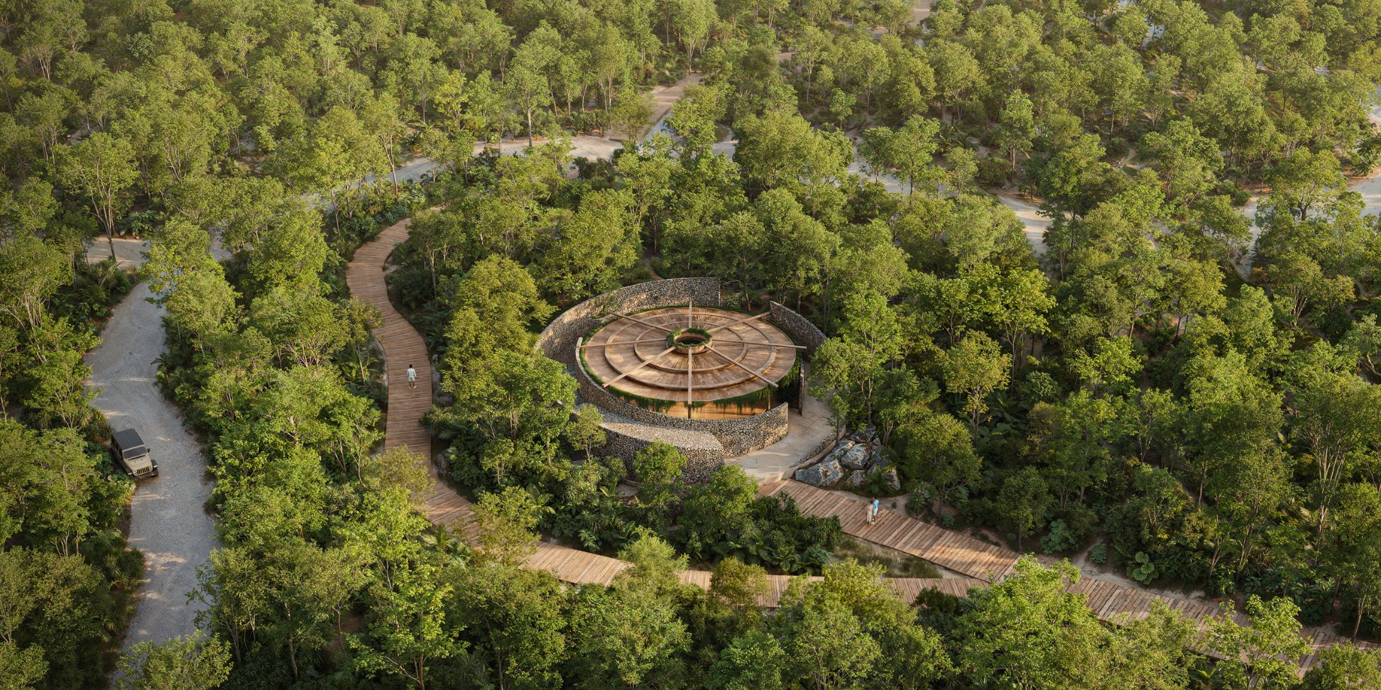 Los dos miradores del proyecto están diseñados para ofrecer una experiencia de conexión profunda entre el agua y la vegetación, invitando a los usuarios a sumergirse en la belleza natural del entorno. Ubicados estratégicamente para capturar las vistas más impresionantes, cada mirador proporciona un punto de observación único desde el cual se puede apreciar la sinergia entre los cenotes cristalinos y la exuberante selva.